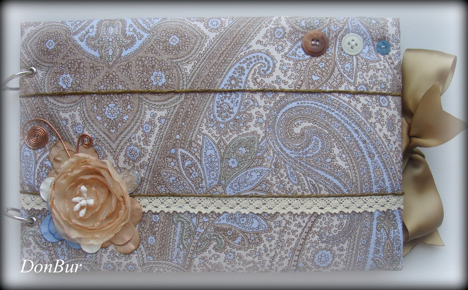 Мягкая обложка из полюбившегося хлопка.Цветочек из органзы.Бусина-кристалл.Завиток скрутила из медной проволоки.Бумажный шнур,цветочки,пуговки и атласная лента.